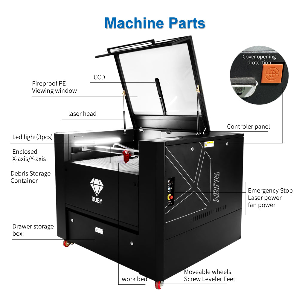 The Ruby6090 Co2 Laser Cutter and Engraver is a high-performance, all-in-one solution designed for industrial-grade engraving and cutting. Combining advanced safety features, intelligent automation, and versatile capabilities, this Ruby6090 Co2 Laser Cutter empowers businesses to achieve precision results on a wide range of materials. Ideal for workshops, manufacturers, and creative professionals, the Ruby6090 Co2 Laser Cutting Machine integrates cutting-edge technology with user-friendly operation, ensuring efficiency and reliability.